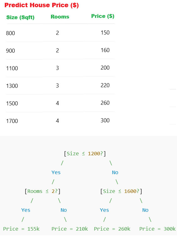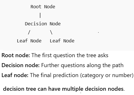 Leaf Nodes (Terminal Nodes): The process ends at the leaf nodes, which represent the final decision, class label, or predicted continuous value.